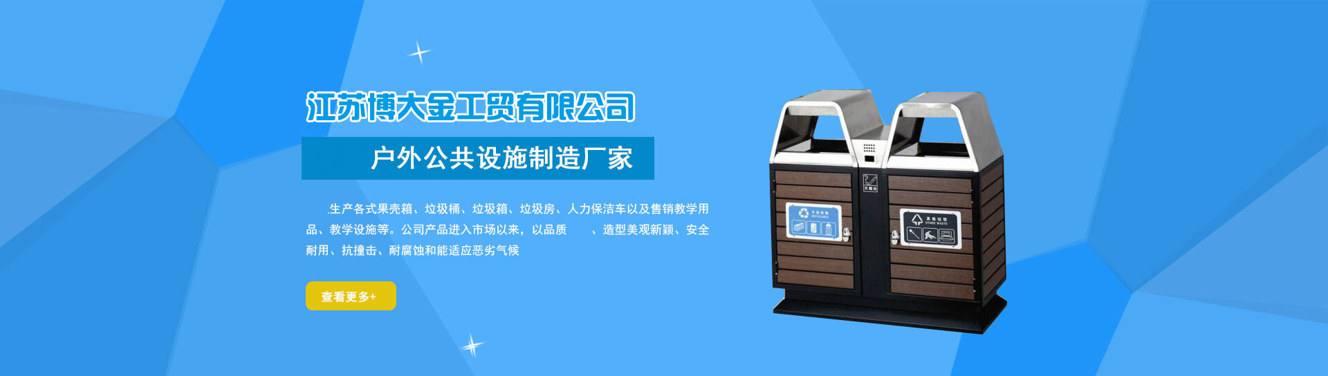 江蘇博大金工貿有限公司是集研發、生產、銷售為一體的戶外公共設施制造廠家,公司建地面積20000,擁有現代化標準廠房10000和一棟大型產品展示廳,中國經濟發展前沿的江蘇淮安為基地,匯聚國內外新的產品和技術資訊,依托華東地區強大的產品制造能力。